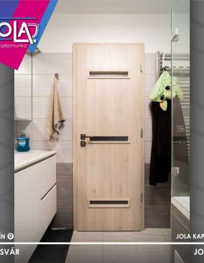 A Basic CPL termékcsalád két népszerű típusát választotta ügyfelünk: az „Aszód” üveges és a „Kőszeg” fémintarziás verziót egyaránt Aland fenyő színben, hozzájuk pedig a karakteres „Speed” kilincset.