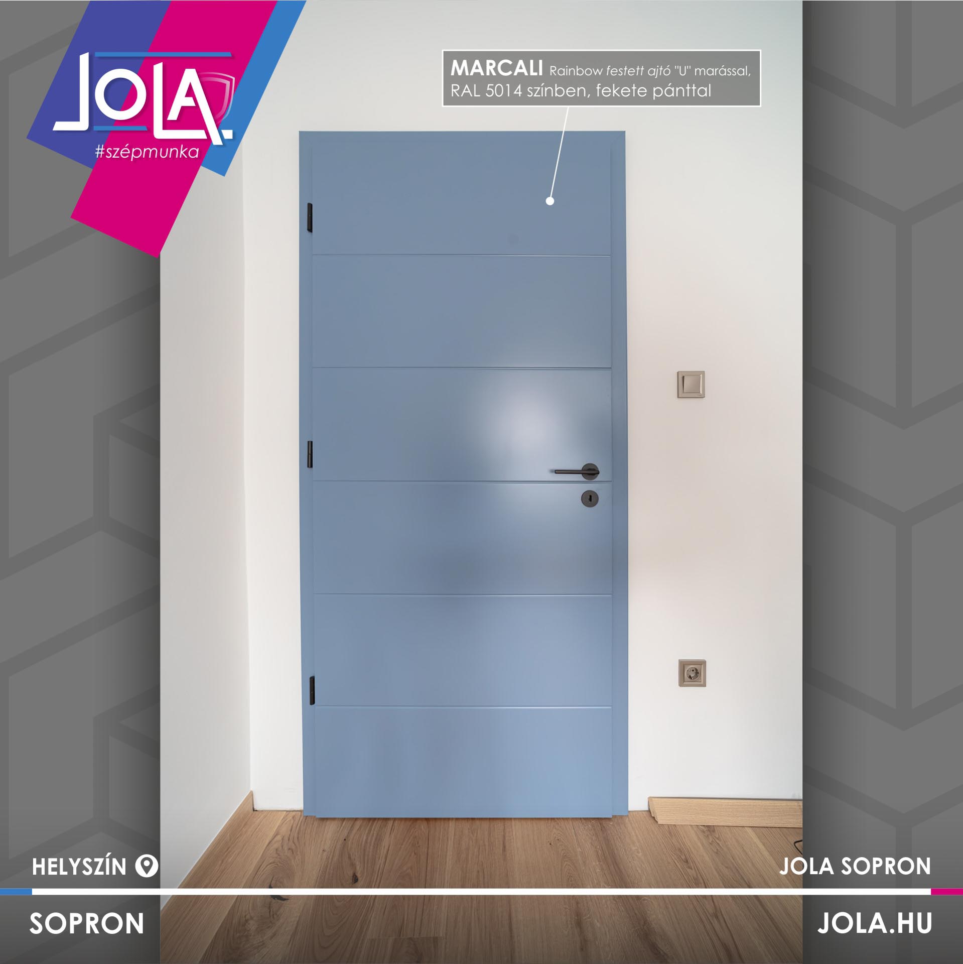 Bencéék, Sopronban a kék egy egyedi variációjára, a RAL 5014-re szavaztak, Daniela kilinccsel és fekete pántokkal kérték.